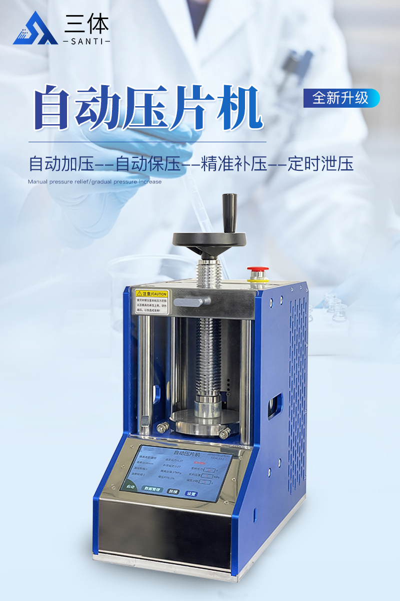 自动粉末压片机该机配置7寸触摸液晶屏,程序控制实现了精准控压,满足了客户多段加压的需求,另外还增设了很多安全配置,适合**实验室使用。